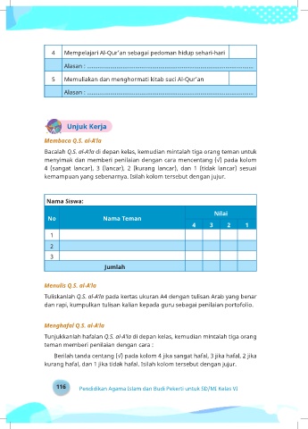 Tunjukkanlah hafalan Q.S. al-A’la di depan kelas, kemudian mintalah tiga orang