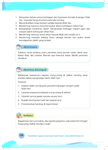 134       Pendidikan Agama Islam dan Budi Pekerti untuk SD/MI Kelas VI