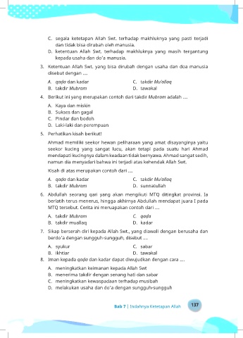 A.  qaḍa dan kadar                           C.  takdir Mu’allaq