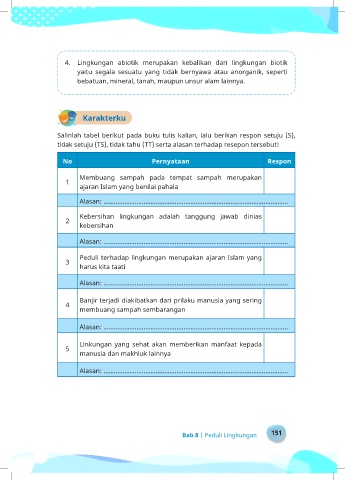 Salinlah  tabel  berikut  pada buku    tulis kalian, lalu  berikan  respon   setuju  (S),