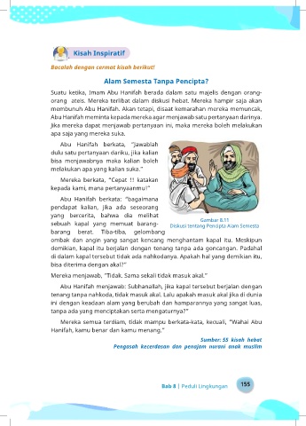 Abu Hanifah menjawab: Subhanallah, jika kapal tersebut berjalan dengan