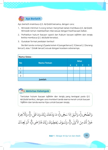 1. Mintalah minimal 3 orang teman menyimak kalian membaca Q.S. Aḍ-Ḍuḥā.