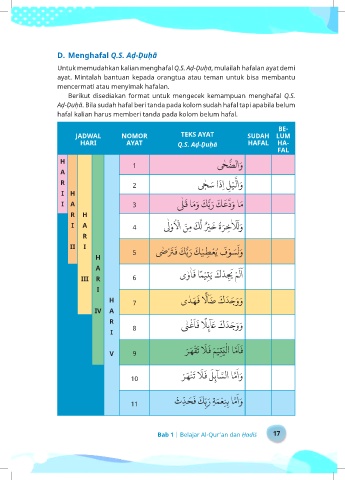 Aḍ-Ḍuḥā. Bila sudah hafal beri tanda pada kolom sudah hafal tapi apabila belum