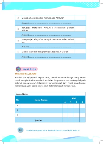 Bacalah Q.S. Aḍ-Ḍuḥā di depan kelas, kemudian mintalah tiga orang teman