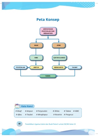 Peta Konsep Kata Kunci # Maaf # Ampun # Penyesalan # Ikhlas # Takwa # KBBI # Afwu # Taubat # Menghapus # Kesatria # Pengecut 48 Pendidikan Agama Islam dan Budi Pekerti untuk SD/MI Kelas VI
