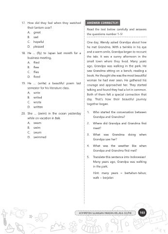 18. He … (fly) to Japan last month for a and a warm smile, Grandpa began to recount