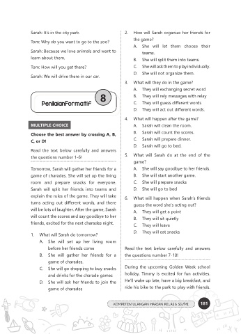 Sarah: It’s in the city park. 2. How will Sarah organize her friends for