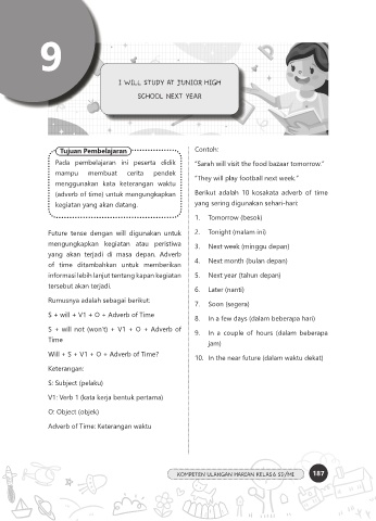 Pada pembelajaran ini peserta didik “Sarah will visit the food bazaar tomorrow.”