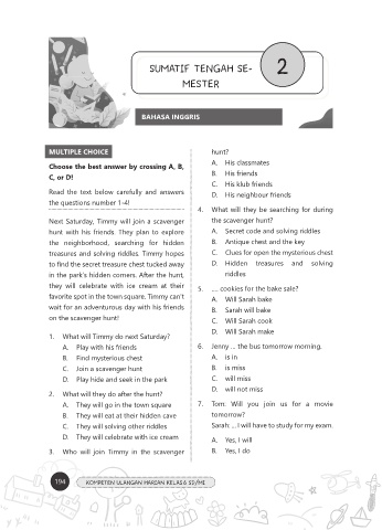 3. Who will join Timmy in the scavenger B. Yes, I do
