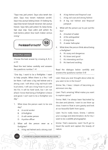 “Saya mau jadi petani. Saya suka tanah dan B. A big helmet and fireproof coat