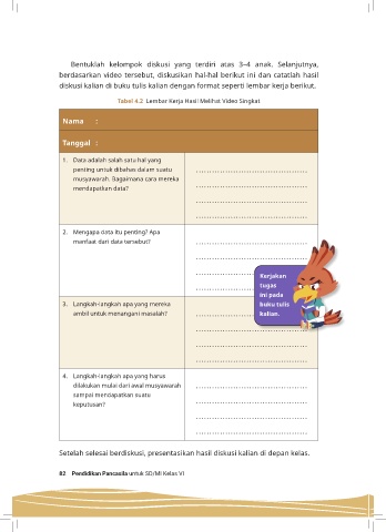 Bentuklah kelompok diskusi yang terdiri atas 3–4 anak. Selanjutnya,