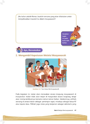 Pada kegiatan ini, kalian akan merasakan secara langsung musyawarah di