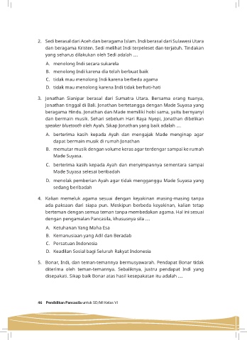 2. Sedi berasal dari Aceh dan beragama Islam. Indi berasal dari Sulawesi Utara