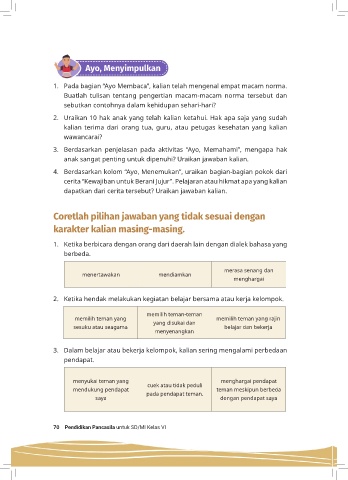 70 Pendidikan Pancasila untuk SD/MI Kelas VI