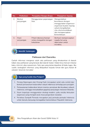 No. Perbedaan Penjajahan Bangsa Eropa Penjajahan Jepang