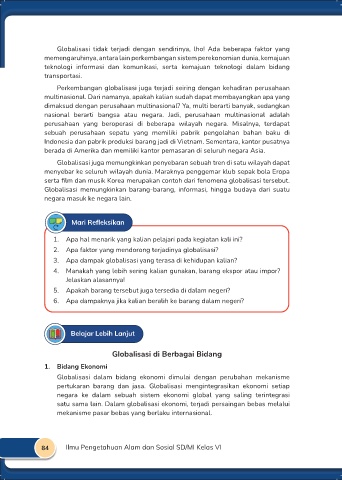 84 Ilmu Pengetahuan Alam dan Sosial SD/MI Kelas VI