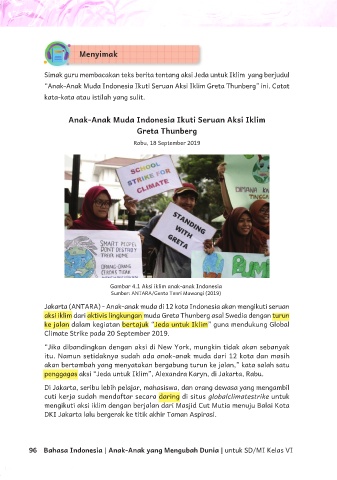 Simak guru membacakan teks berita tentang aksi Jeda untuk Iklim yang berjudul