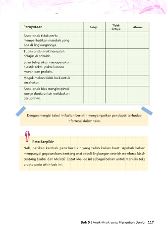 Dengan mengisi tabel ini kalian berlatih menyampaikan pendapat terhadap