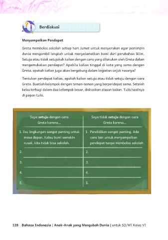 Greta. Buatlah kelompok dengan teman-teman yang berpendapat sama. Setelah