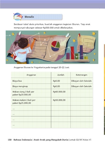 Berdasar tabel skala prioritas, buatlah anggaran kegiatan liburan. Tiap anak