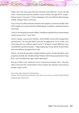 “Kafe ini memang dibuat ramah difabel. Pemiliknya ingin kami bisa setara dengan