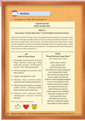 198 Bahasa Indonesia | Anak-Anak yang Mengubah Dunia | untuk SD/MI Kelas VI