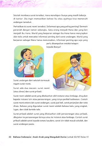 Setelah membaca surat tersebut, Hana menelepon ibunya yang masih bekerja