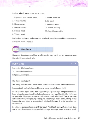 Perhatikan lagi surat undangan dari sekolah Hana. Coba tunjukkan unsur-unsur