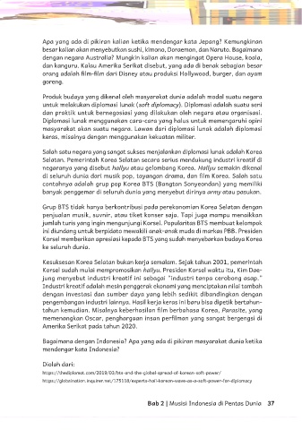 di seluruh dunia dari musik pop, tayangan drama, dan film Korea. Salah satu