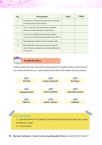 70 Bahasa Indonesia | Anak-Anak yang Mengubah Dunia | untuk SD/MI Kelas VI