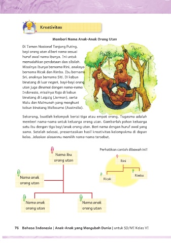 memberi nama-nama untuk keluarga orang utan. Gambarlah pohon keluarga
