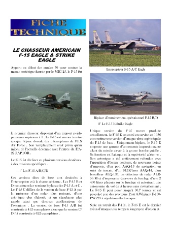 puissance supérieur à 1 . Le F-15 est encore à notre et constitue une version d’attaque ultra sophistiquée