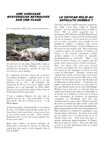 Le 16 Septembre 2002, une carcasse mystérieuse a sauivante . La revue australienne Nexus a publié en