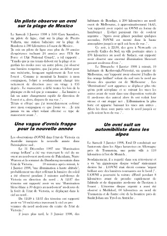 1 Janvier 1998, "une illumination à haute altitude", derière lui . L'OVNI était décrit comme "argent