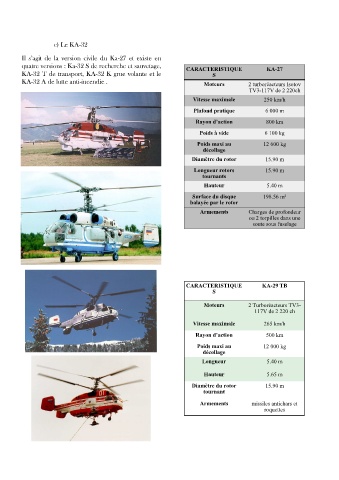 quatre versions : Ka-32 S de recherche et sauvetage, CARACTERISTIQUE KA-27
