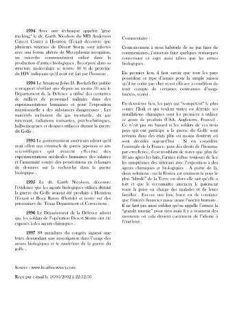 plusieurs vétérans de Desert Storm sont infectés Contrairement à mon habitude de ne pas faire de