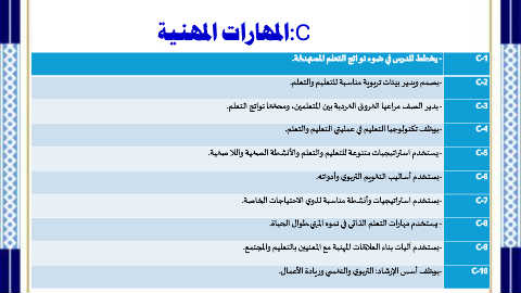 -يصمم ويدير بيئات تربوية مناسبة للتعليم والتعلم. C-4