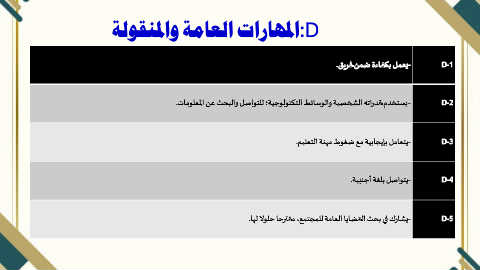 -يستخدم قدراته الشخصية والوسائط التكنولوجية؛ للتواصل والبحث عن المعلومات. D-2
