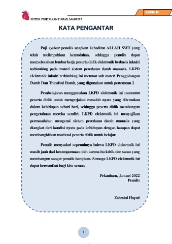 terbimbing pada materi sistem peredaran darah manusia. LKPD