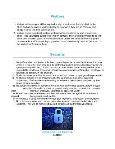 6) The campus is to be monitored by vetted staff members, employees, and volunteers.