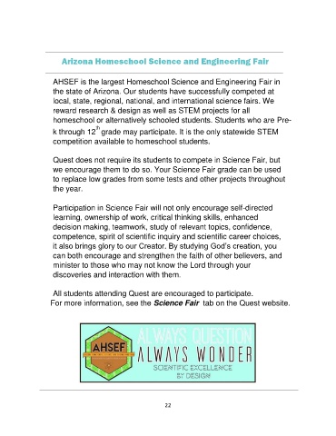 Quest does not require its students to compete in Science Fair, but