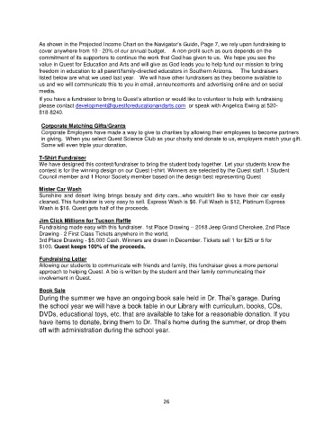 As shown in the Projected Income Chart on the Navigator’s Guide, Page 7, we rely upon fundraising to