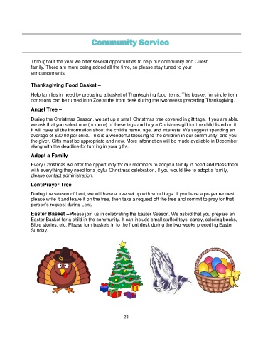 Easter Basket –Please join us in celebrating the Easter Season. We asked that you prepare an