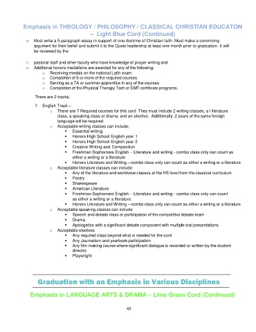 Emphasis in LANGUAGE ARTS & DRAMA – Lime Green Cord (Continued)