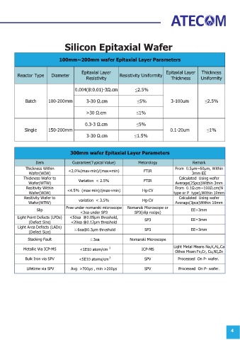Batch 100-200mm 3-30 Ω.cm ≤5% 3-100um ≤2.5%