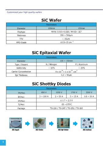 Polytype 4H-N: 0.015~0.028 / 4H-SI> 1E7