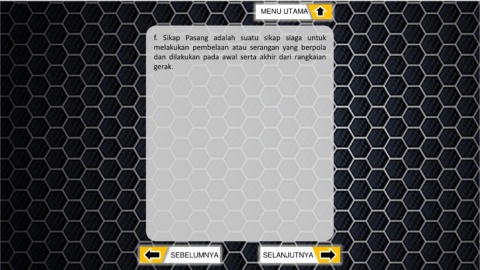MENU UTAMA f. Sikap Pasang adalah suatu sikap siaga untuk melakukan pembelaan atau serangan yang berpola dan dilakukan pada awal serta akhir dari rangkaian gerak. SEBELUMNYA SELANJUTNYA