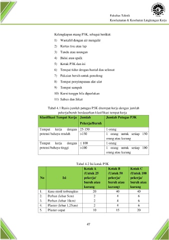 Tabel 4.1 Rasio jumlah petugas P3K ditempat kerja dengan jumlah