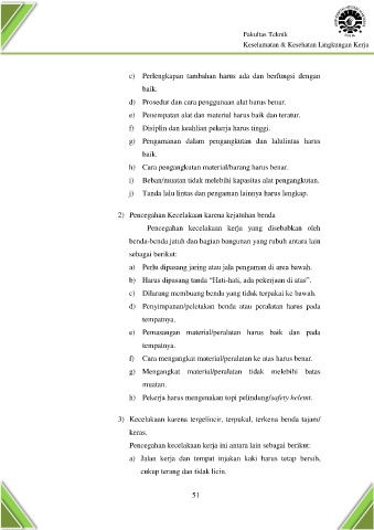 2)  Pencegahan Kecelakaan karena kejatuhan benda