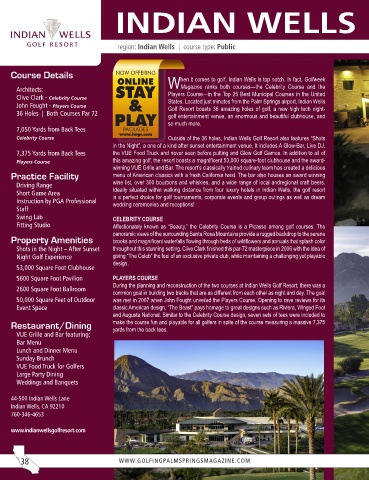 Course Details NOW OFFERING hen it comes to golf, Indian Wells is top notch. In fact, Golfweek